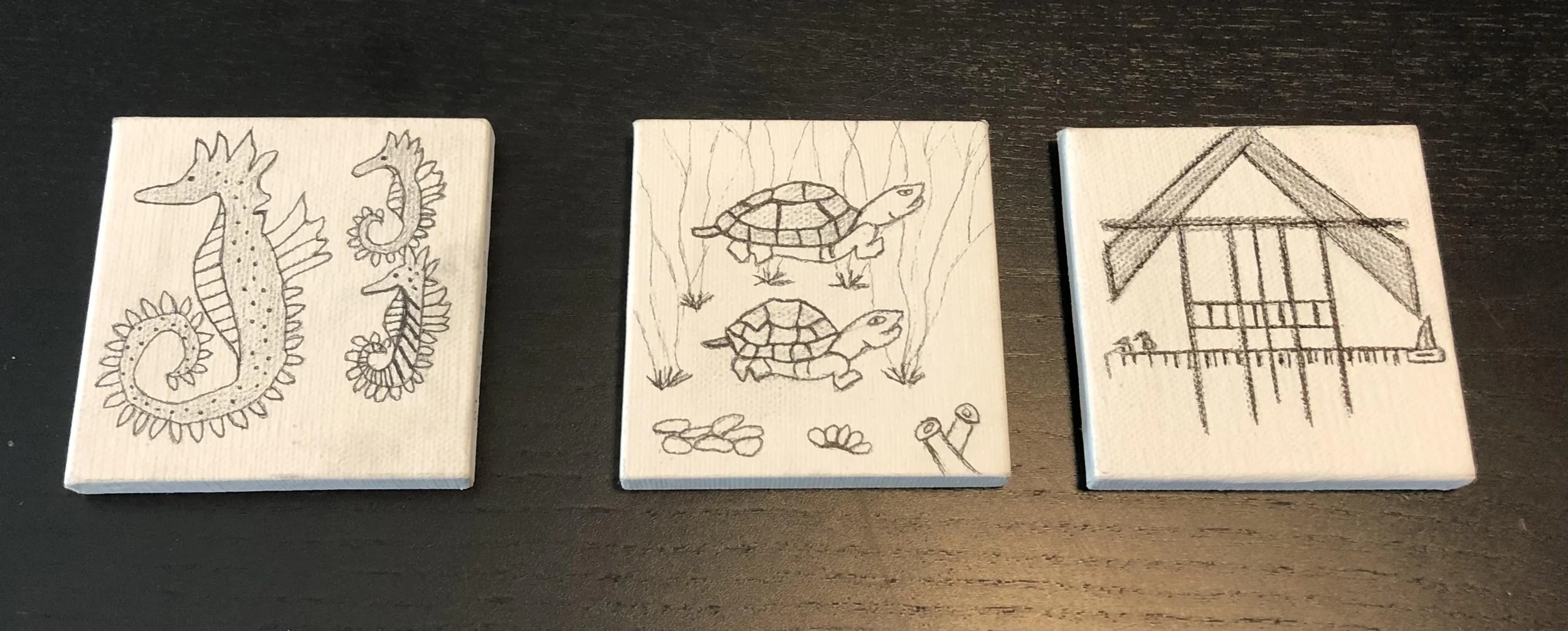 Secondly, Debby is a professional artist. At Melt and More in Fairhope, she sold gnomes and other art – tiny canvases featuring black and white sketches that feature animals and scenes of the Fairhope area. She enjoys using recycled wood in her creations. Debby can personalize the gnomes and canvases as well as other creations on wood. Now, her art is for sale online through her business.